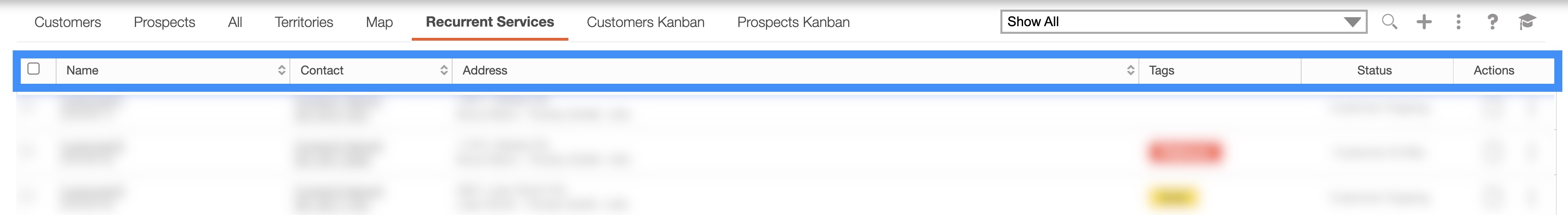 | "Service Type" | The type of recurring service, such as quarterly, yearly, etc., that the customer is assigned. |