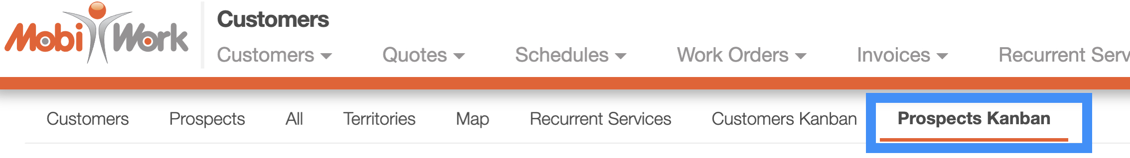 | "Add Work Order" | Adds a work order for that specific customer or prospect. |