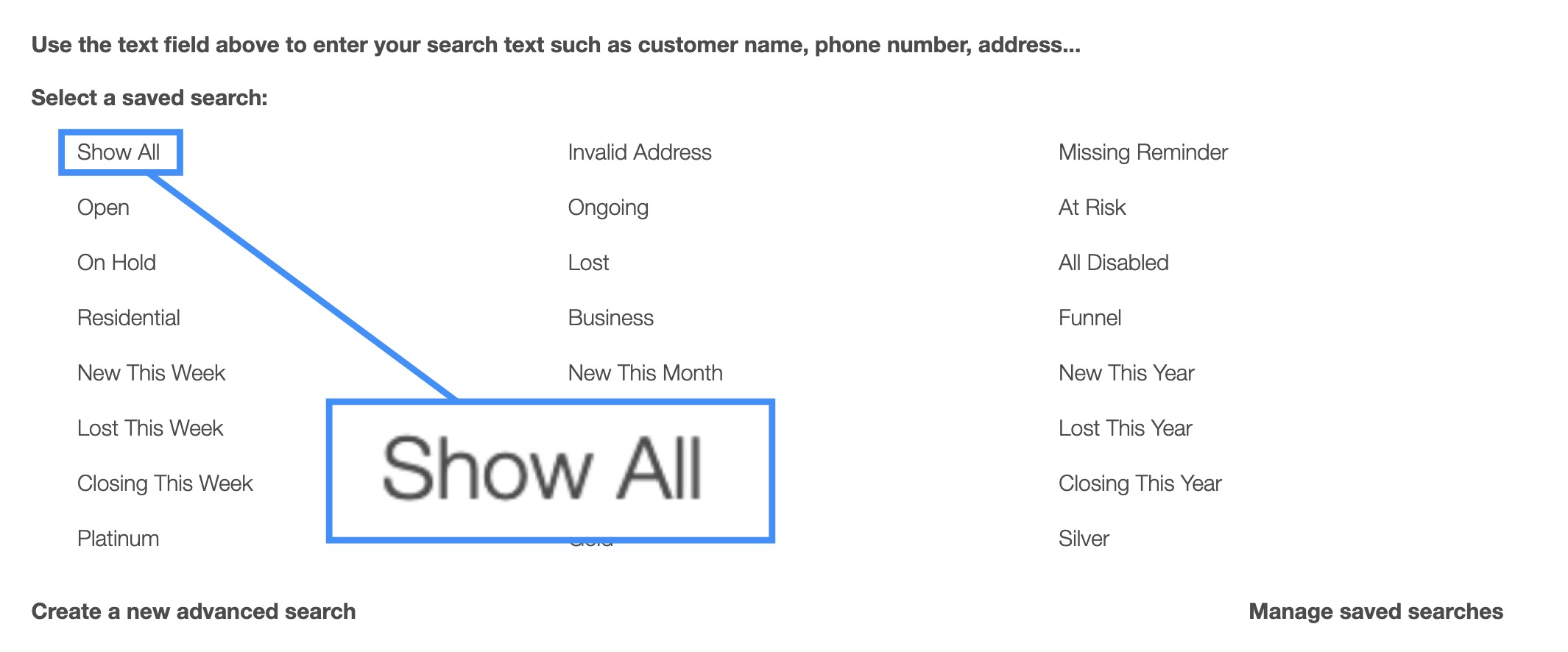If you would like to view all your customers, click on the "Show All" option from the drop-down menu: