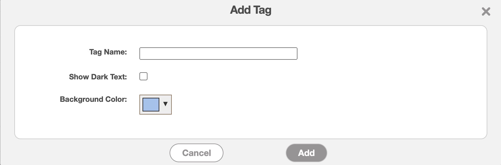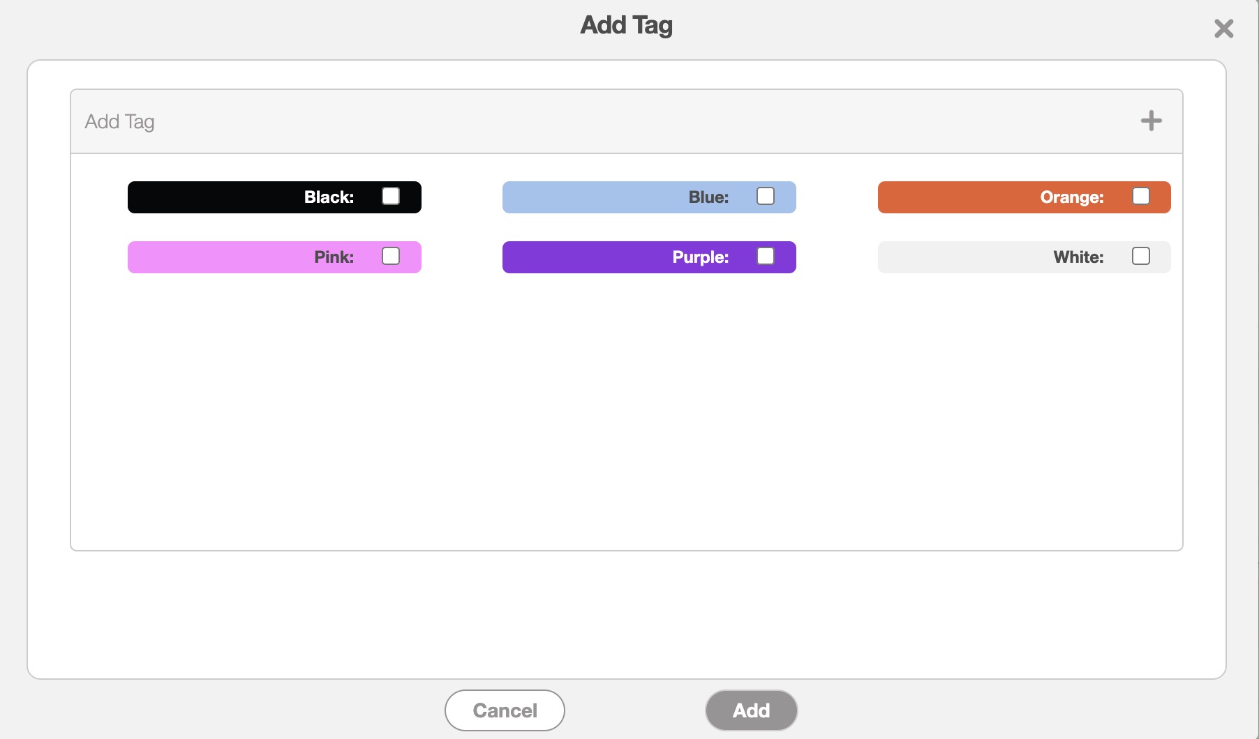 Once you click on the Plus Sign icon, the Add Tag pop-up window will then appear: