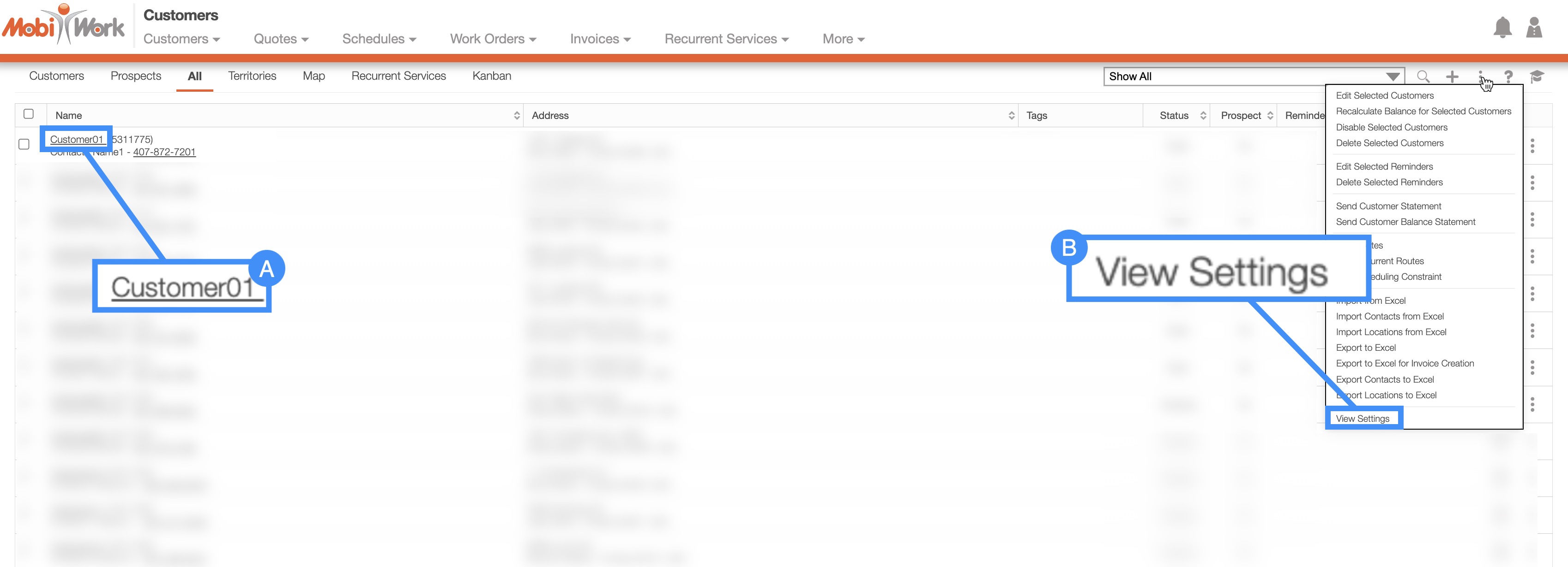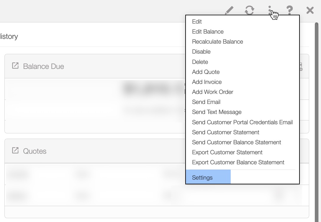 From the Customers feature page there are two different ways you can access the Customer Settings page. For more information on how to access the Customers feature page please see the Customers List section: