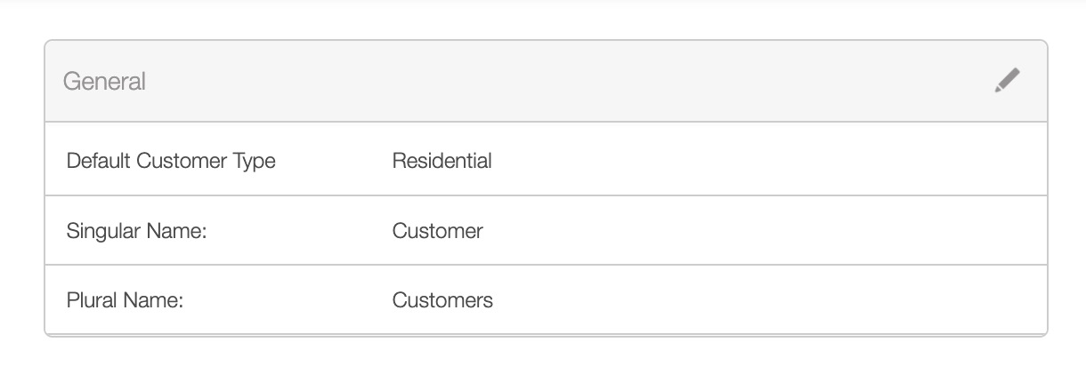 The "General" section will display the default customer type (i.e., residential or business) and how your customers are referred to in MobiWork: