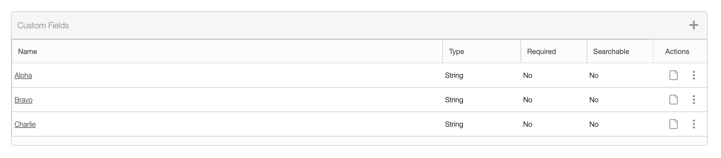 | "Actions" | Allows you to view, edit, and delete the selected custom field. |