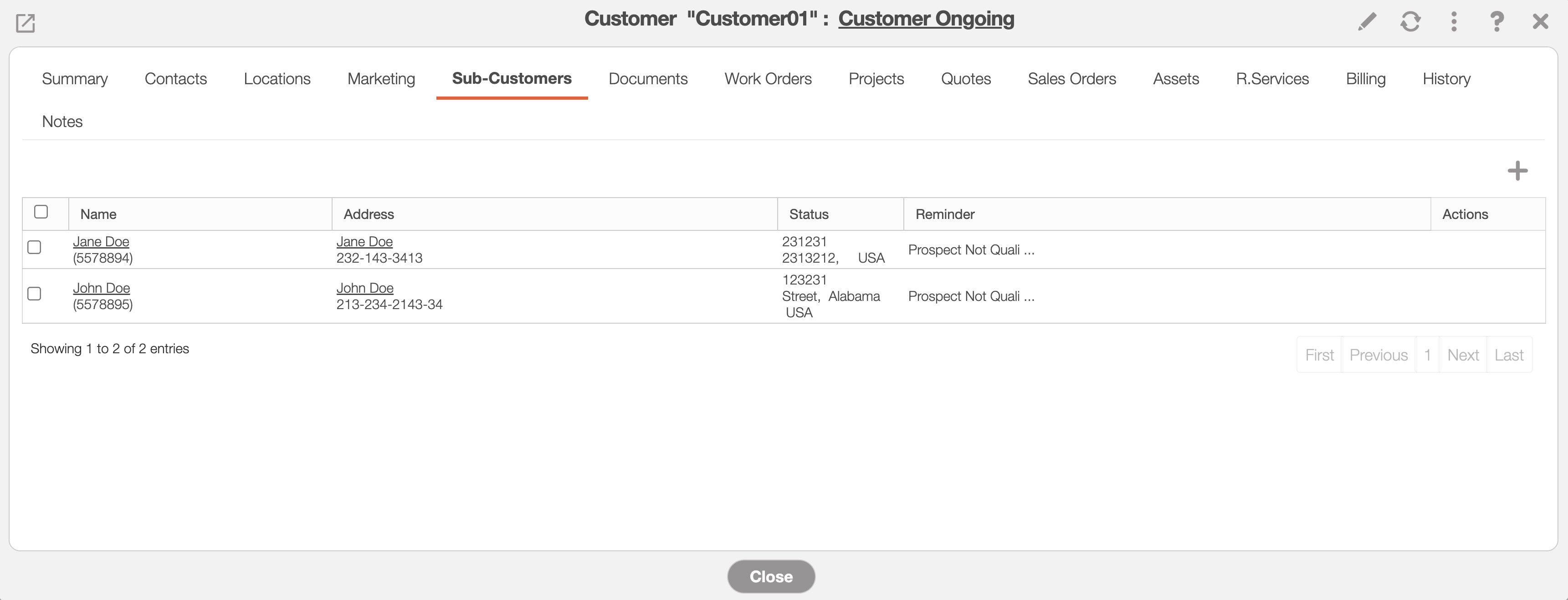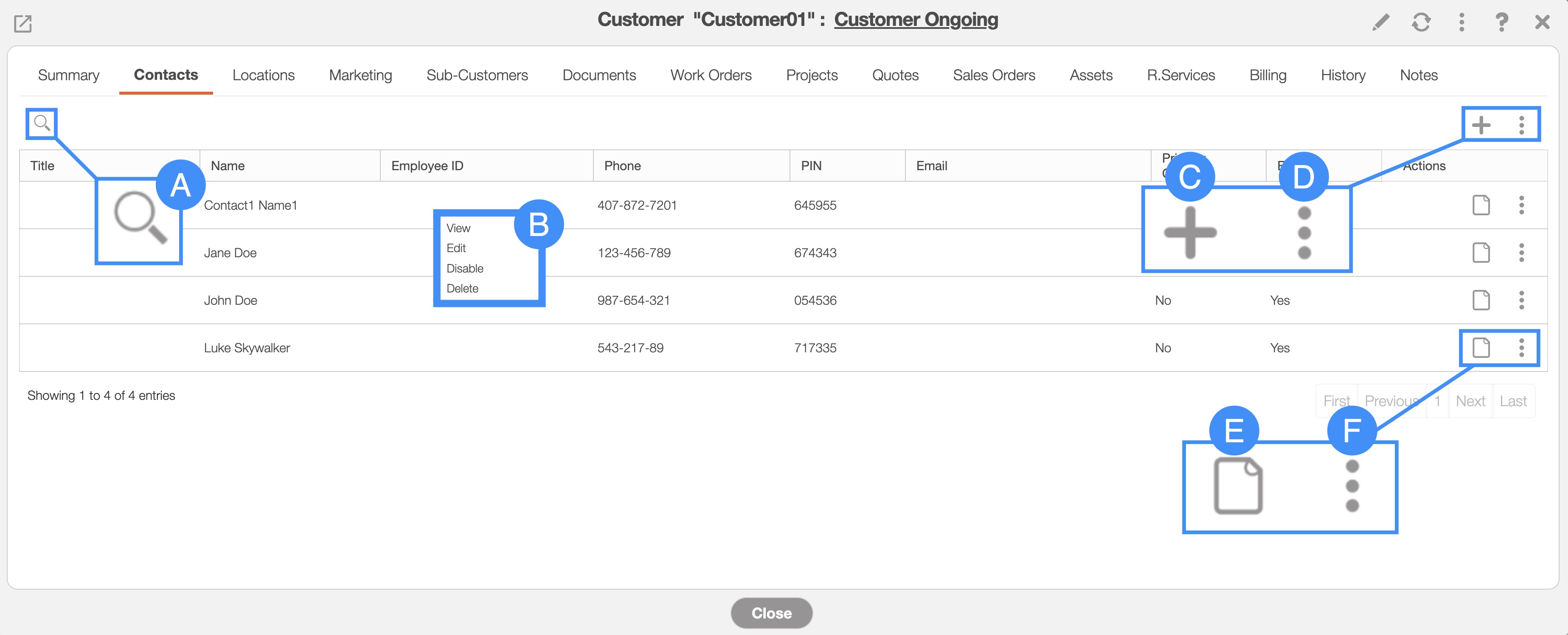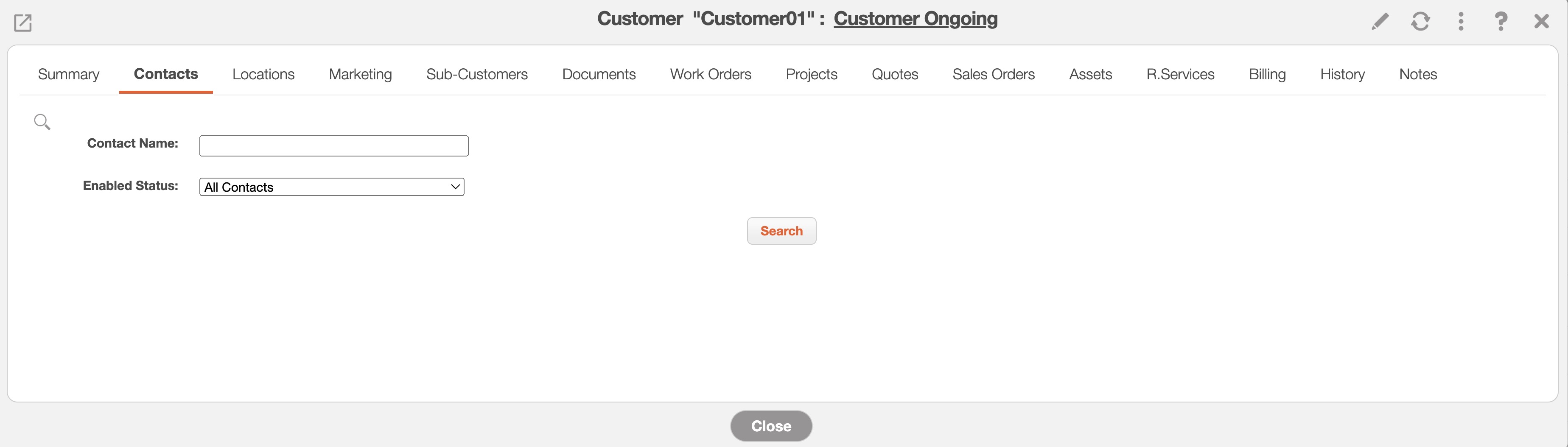 | "Disable" | Disables the customer so that future work orders or recurrent services cannot be generated for them. |