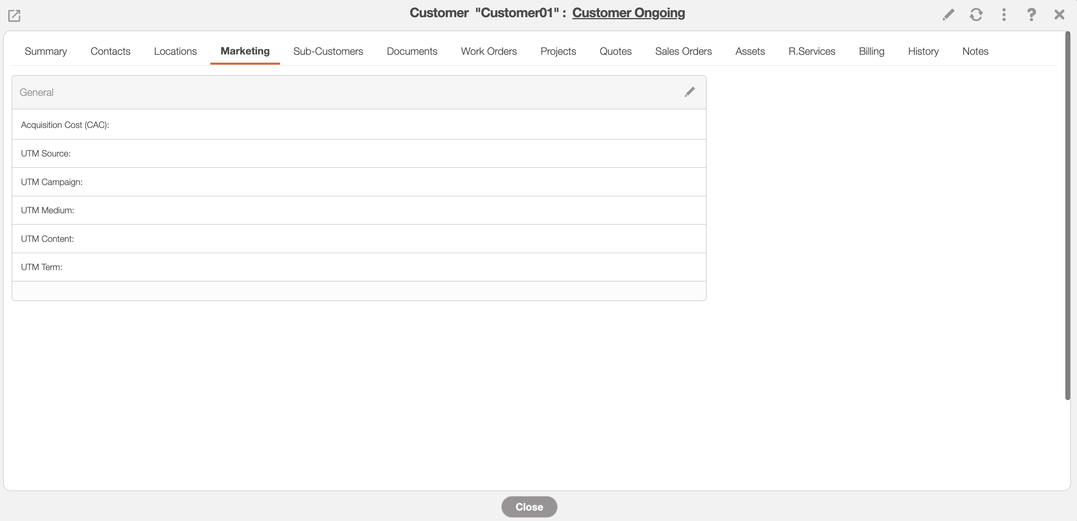 There are fifteen tabs in all for the View Customer pop-up window; each tab displays different information regarding the customer: