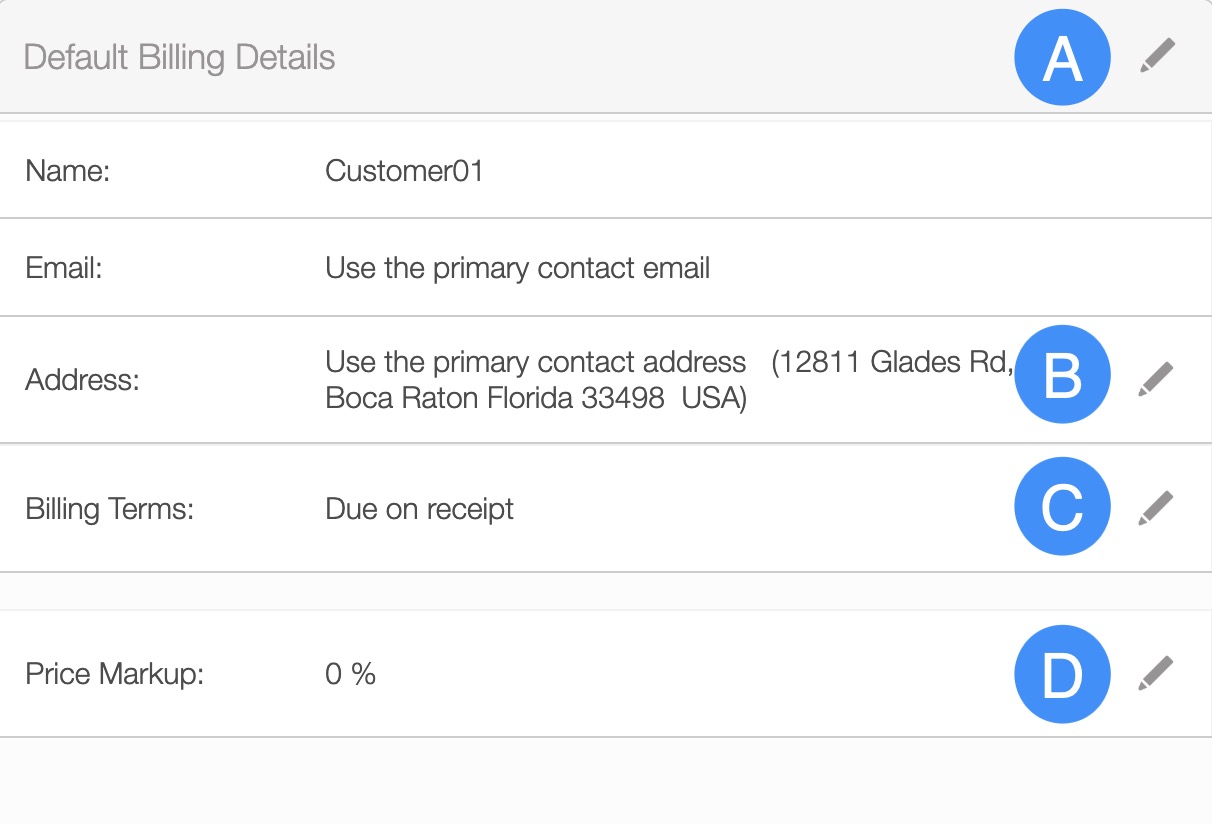 You can also edit the billing address to a new address instead of using the default address (by clicking on the Pencil icon by the Billing Address field). This is helpful when the billing address is different from the company's address; please see the Edit an Invoice for more information about having a different billing address on the invoice: