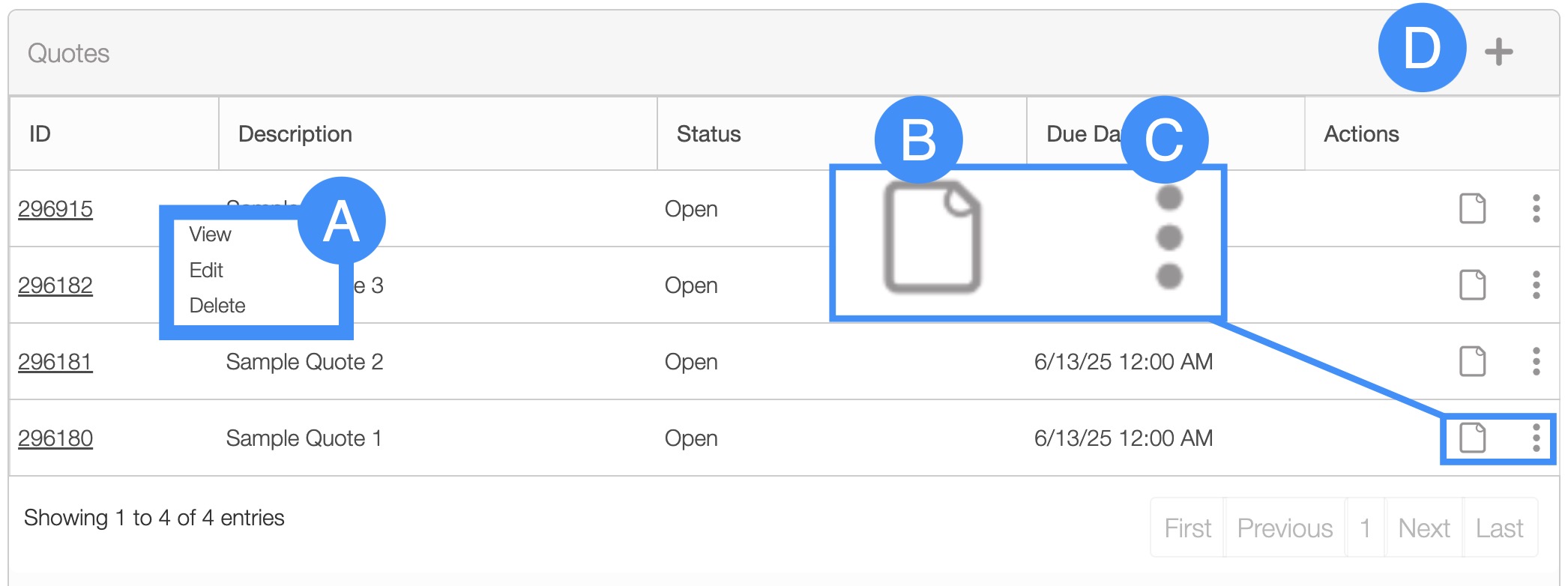 For more information about how to access the Quotes feature, please see Quotes List page.