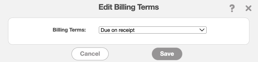 You can edit the billing details. You can also edit the billing details (by clicking on the Pencil icon by the "Billing Terms" field). This will allow you to adjust when payment is due:
