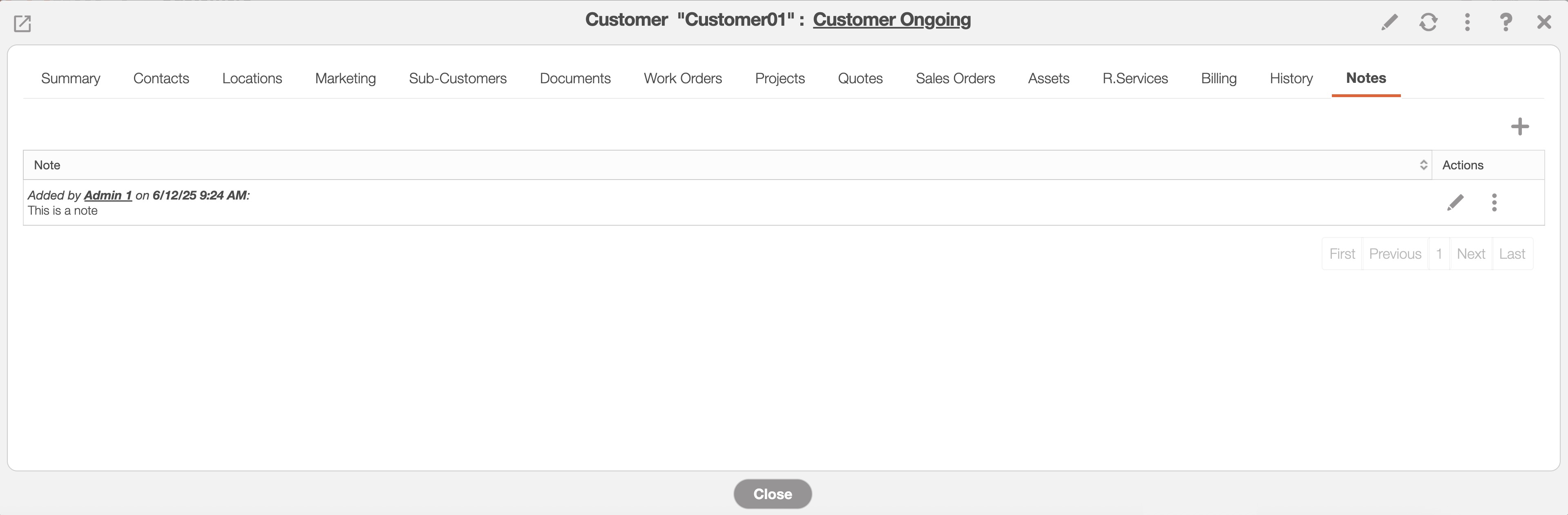 The "Notes" tab will allow you to add and manage notes related to customer: