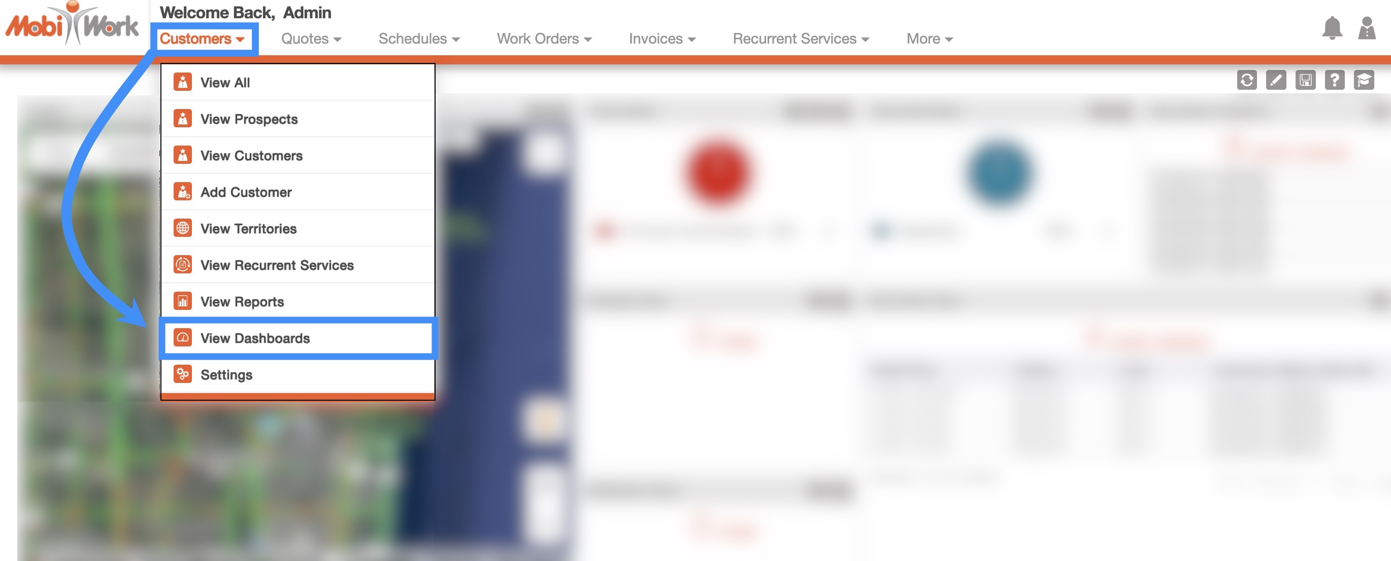 You can access the Dashboard feature page through any of the default tabs from your MobiWork web application.