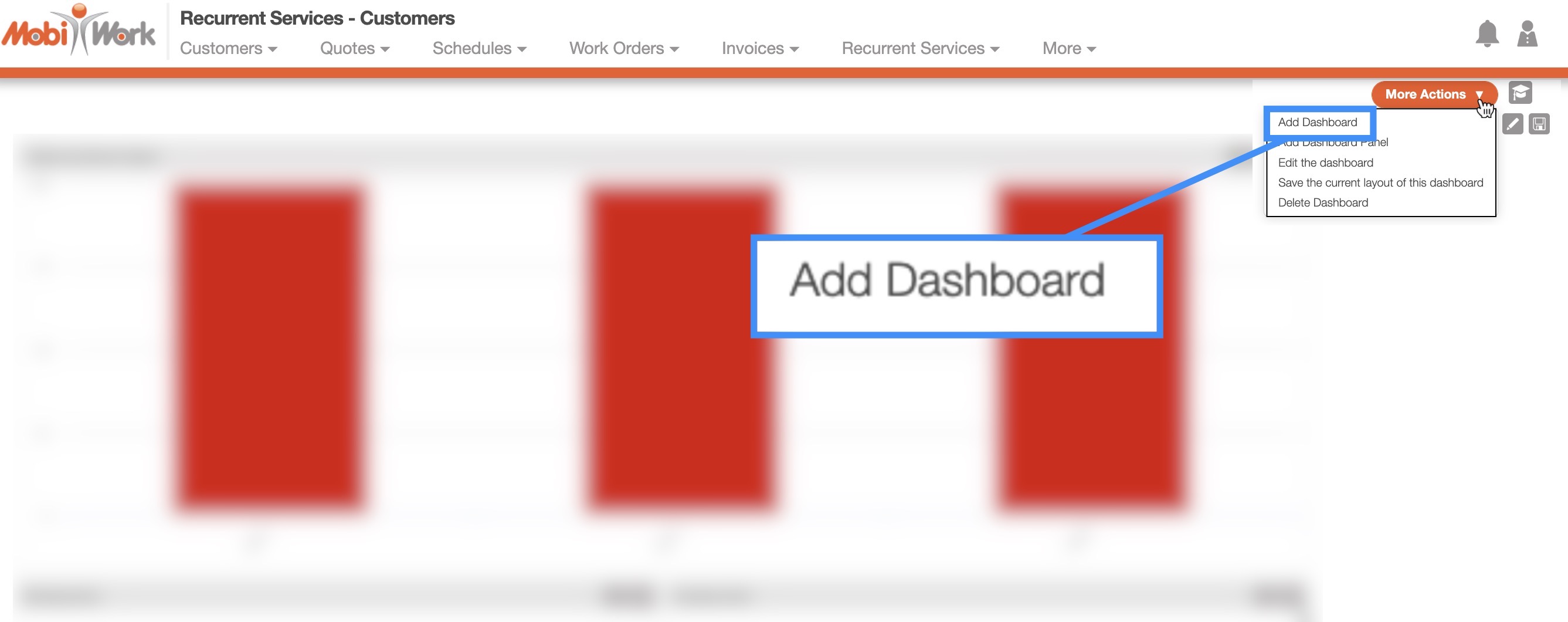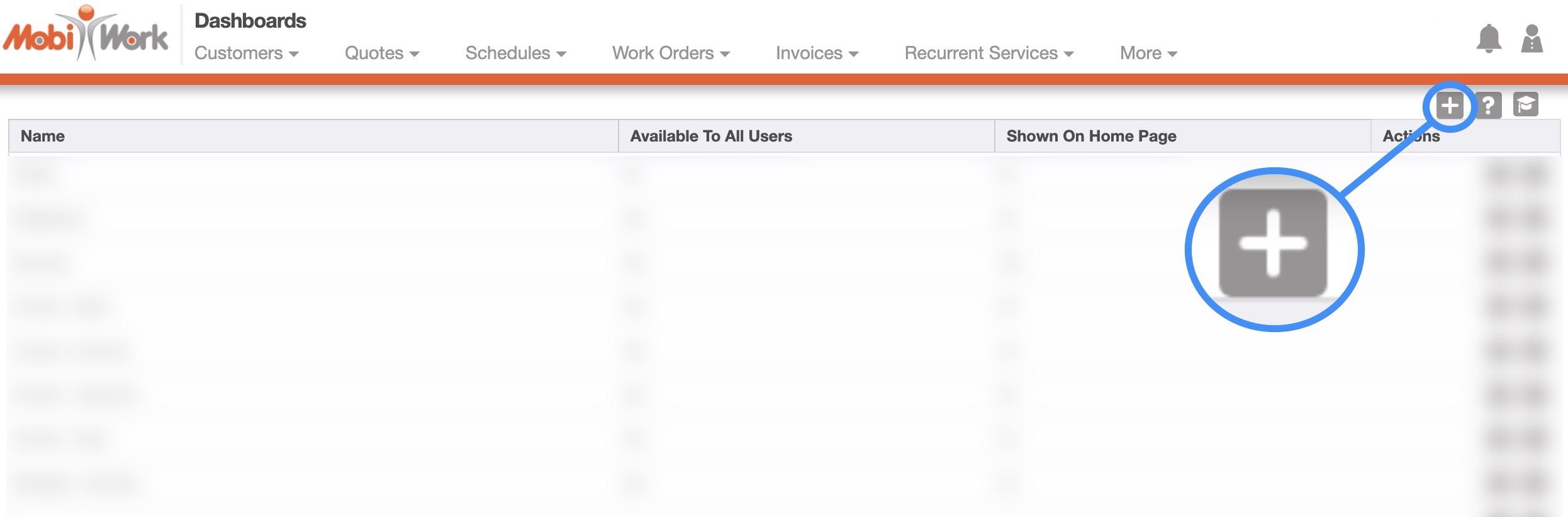You will be able to easily add a new dashboard to your MobiWork account. You can set up this dashboard as your main dashboard (by clicking the Home Page Dashboard checkbox) or allow other users to access it (by clicking the Global Dashboard checkbox).