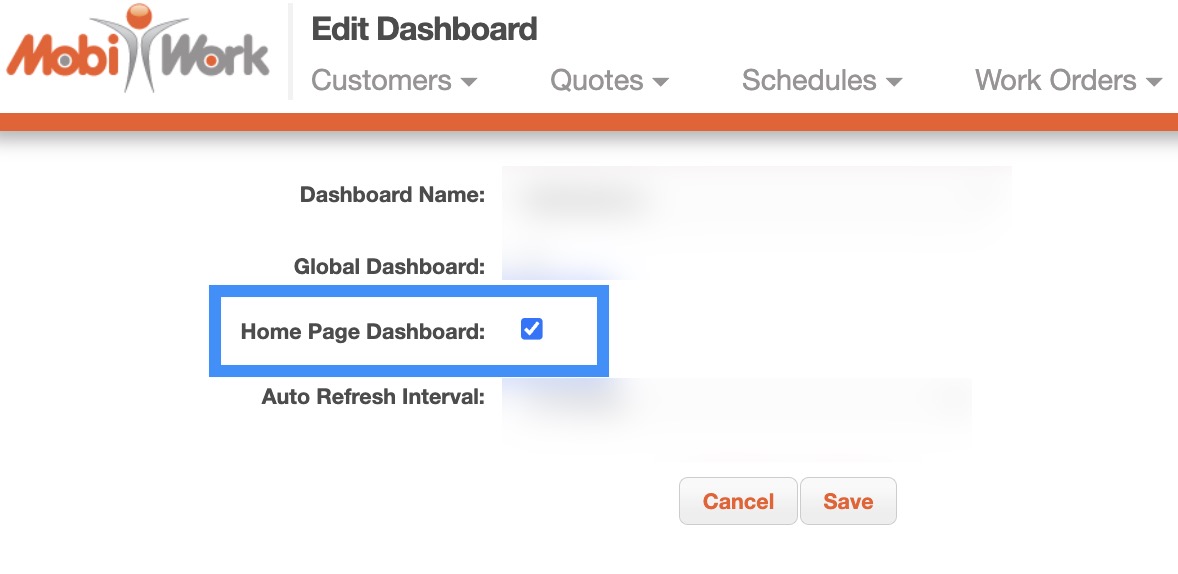 To set up a dashboard as your main dashboard for your homepage, you will first need to access the Edit Dashboard page. For more information about how to access this page, please see the Edit Dashboard page.