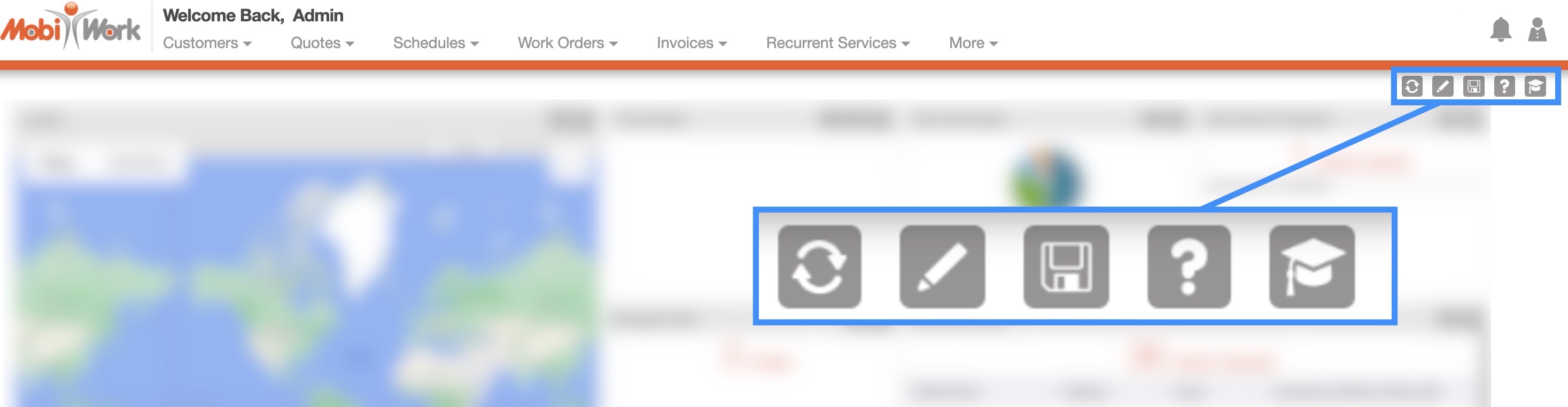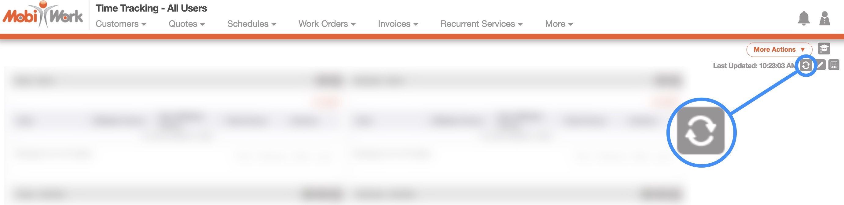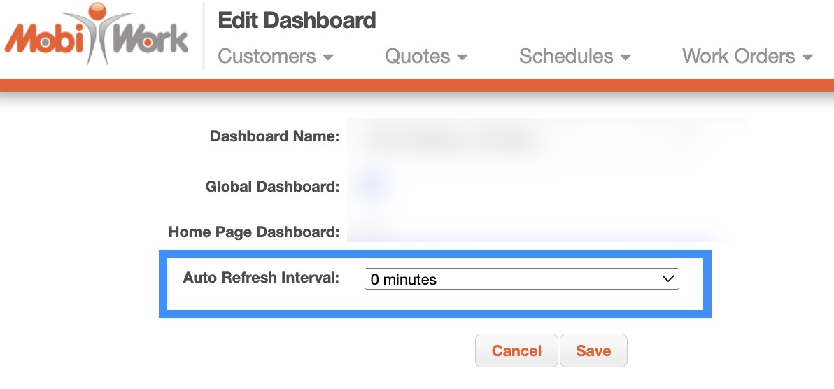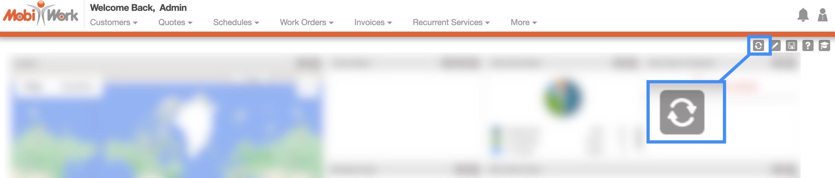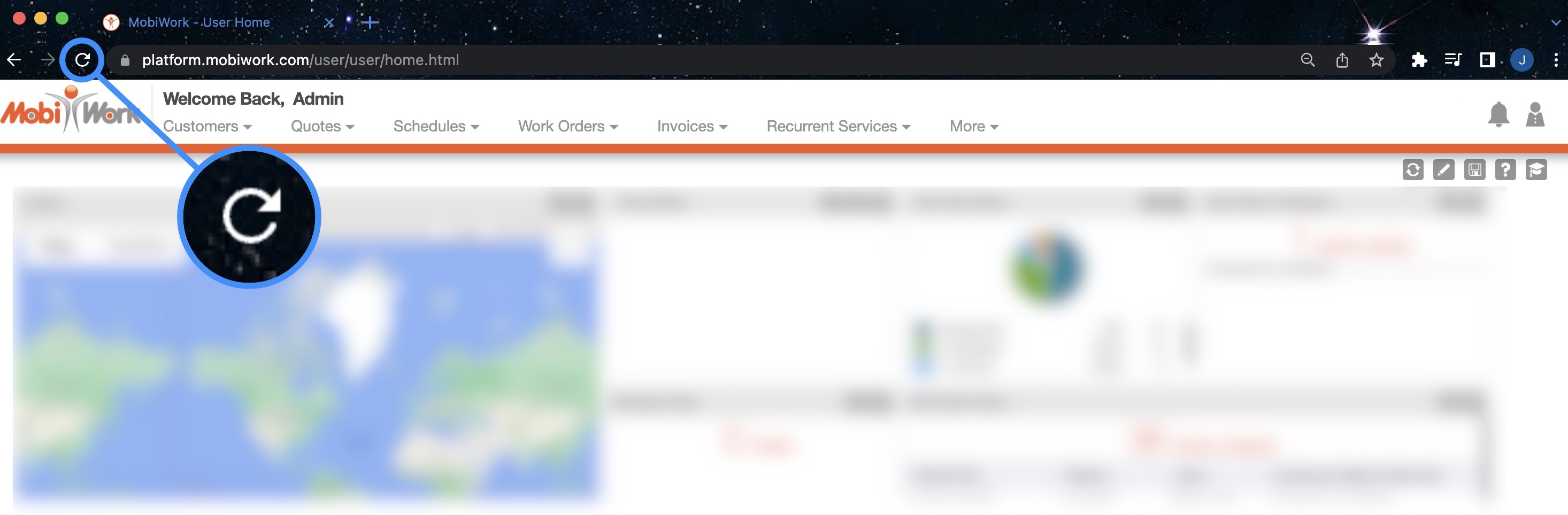 You can refresh your dashboard homepage data by clicking on the MobiWork logo in the top-left corner of your web application: