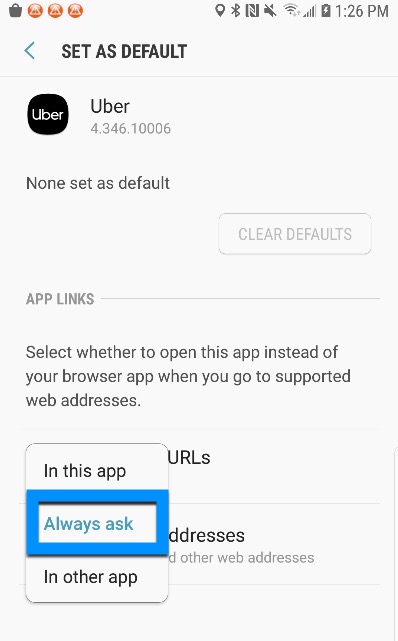 When selecting to view a Customer Address from either a Customer Profile or Work Order View, MobiWork will open up the Uber application.