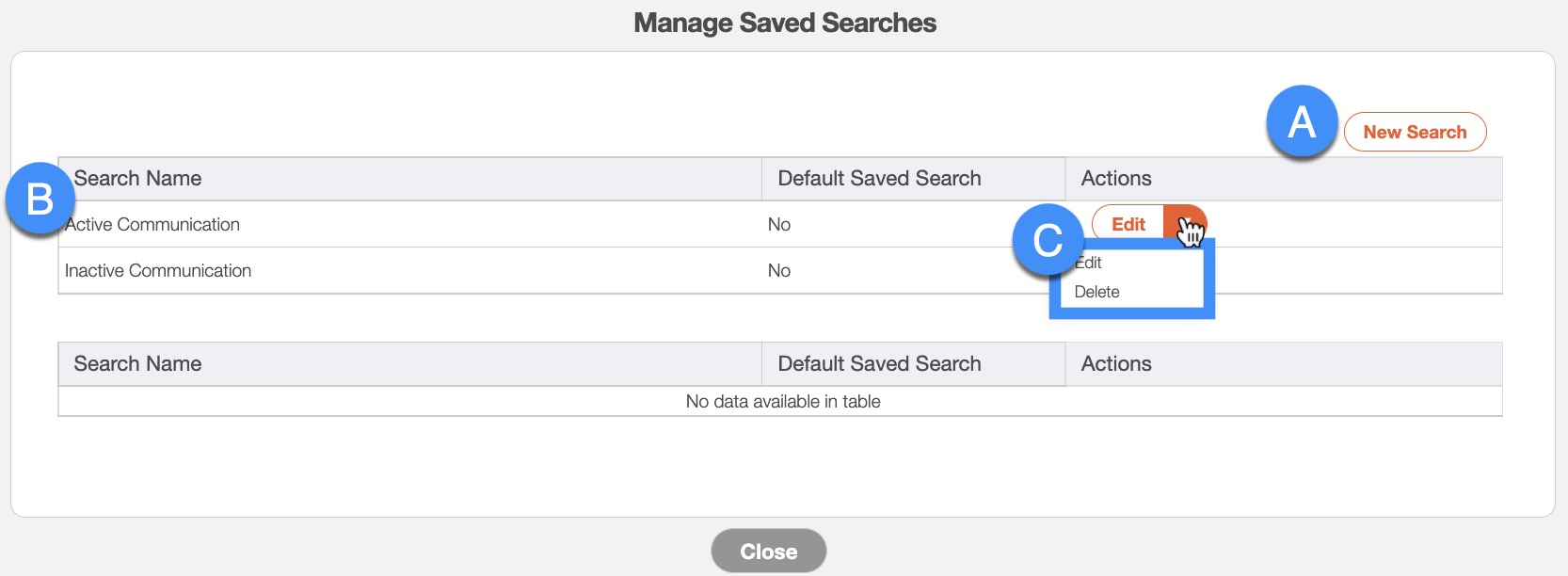 Manage Saved Searches