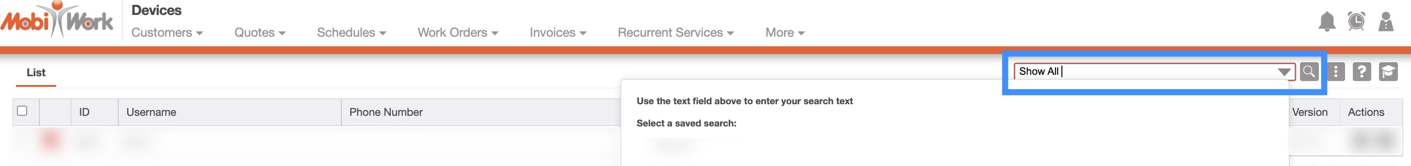 By default, MobiWork provides a saved search for you to use: