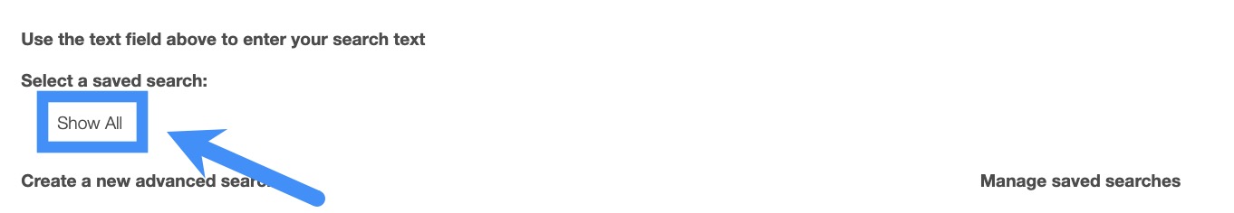Saved searches are a powerful search tool where the search-criteria has been saved for future use; to access the saved searches drop-down, click in the search bar.