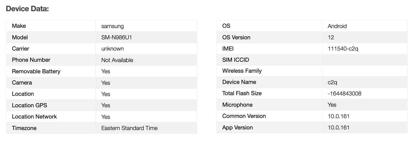| "Phone Number" | The phone number of the device. |
