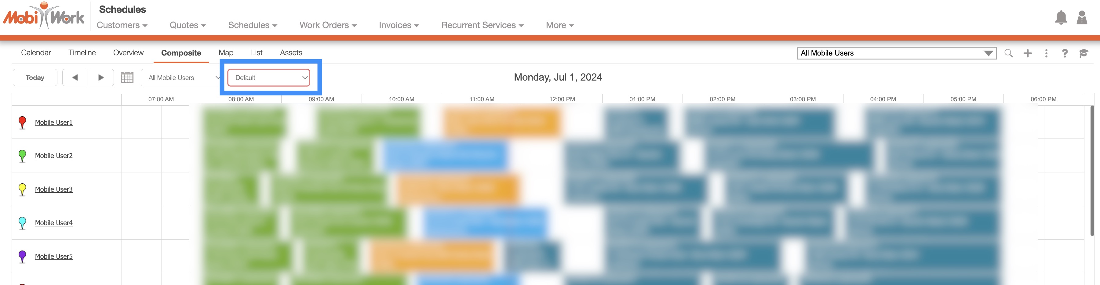 You can select the desired time zone in the Schedule feature by using the drop-down menu next to the "All Mobile Users" drop-down: