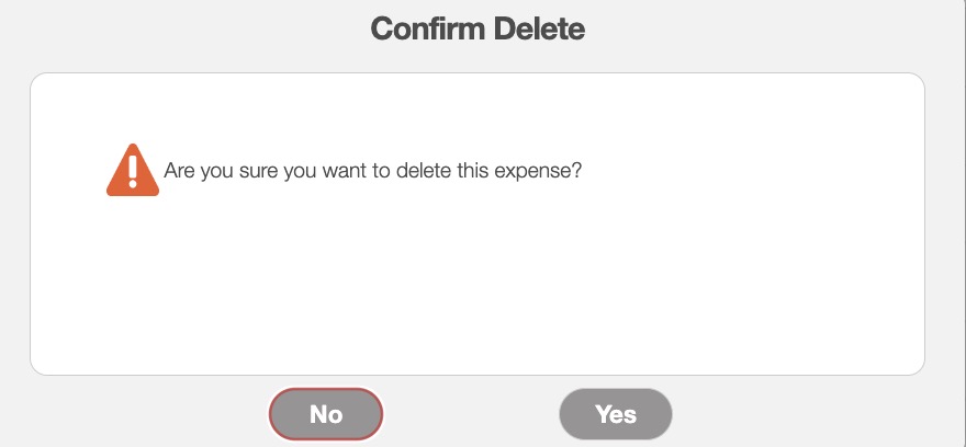 Regardless of how you choose to delete an expense, the Confirm Delete pop-up window will automatically appear: