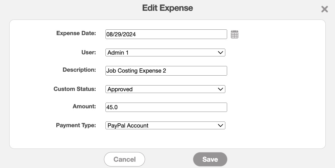 The How to Access the Page section will highlight how to navigate to the Edit Expense pop-up window. Regardless of the method you choose, the Edit Expense pop-up window will appear: