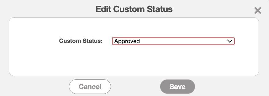 The Edit Custom Status pop-up window will then appear; in this pop-up window select the desired status from the drop-down and then click the Save button to confirm the updated status.