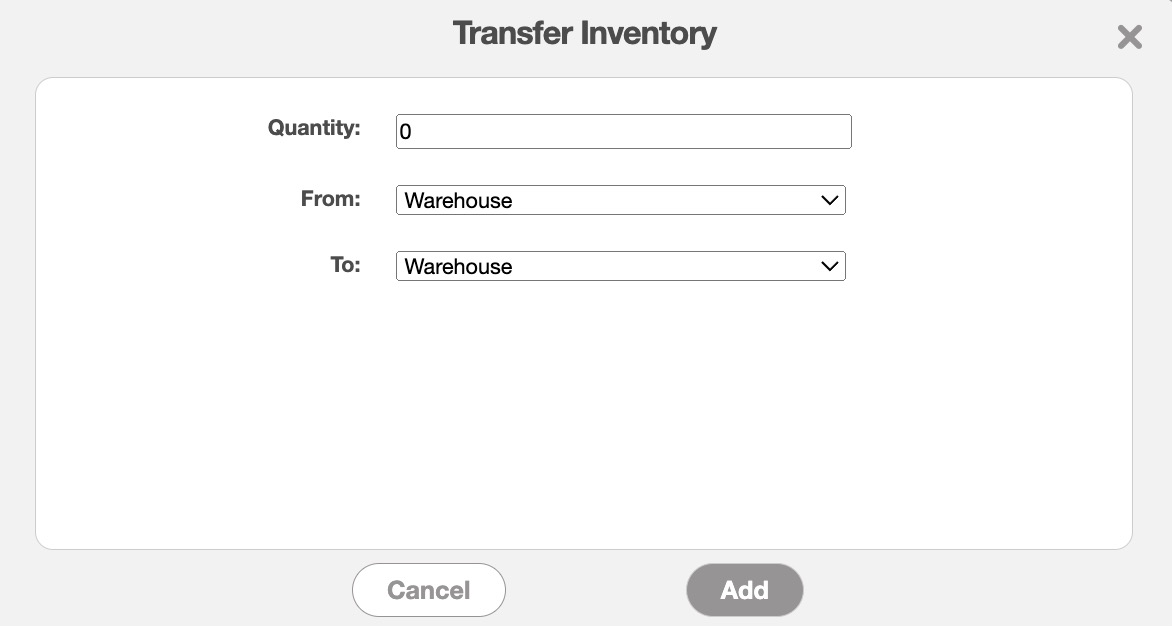Regardless of how you add stock to your warehouse, the Add Inventory To Warehouse pop-up window will then appear: