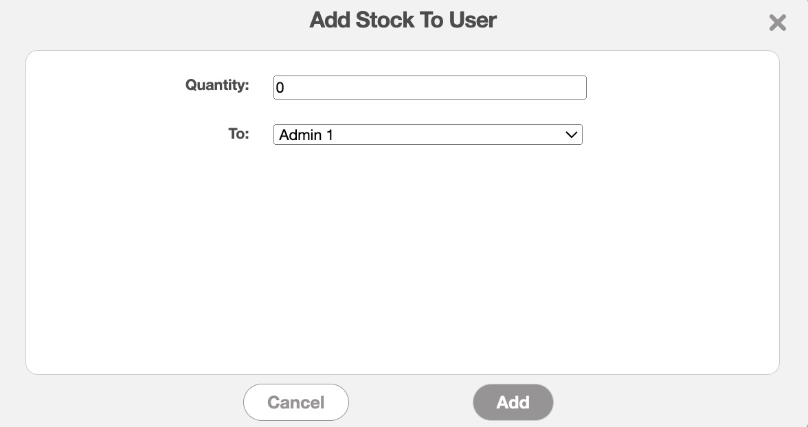 Regardless of how you add stock to a user, the Add Stock To User pop-up window will then appear.