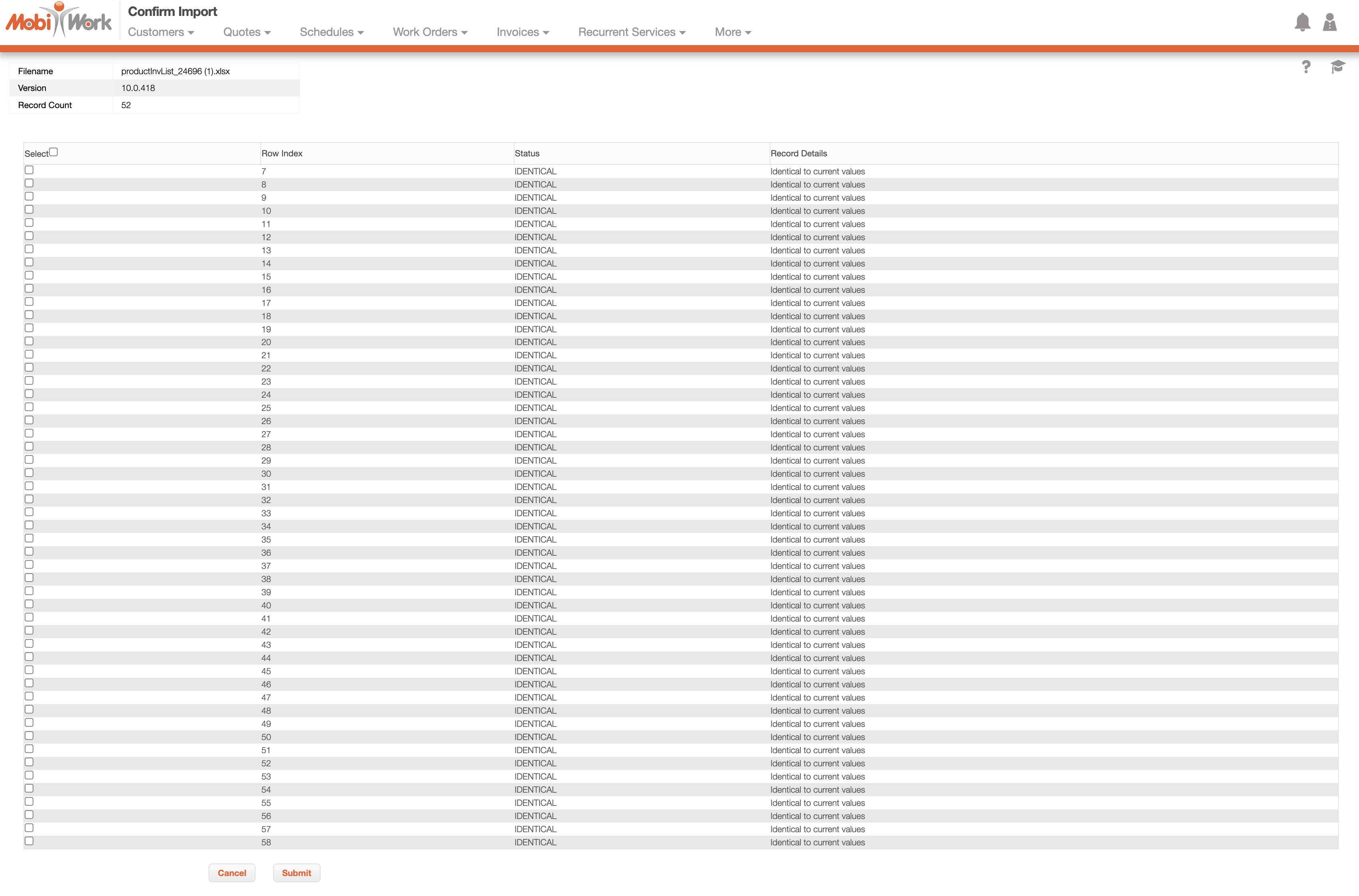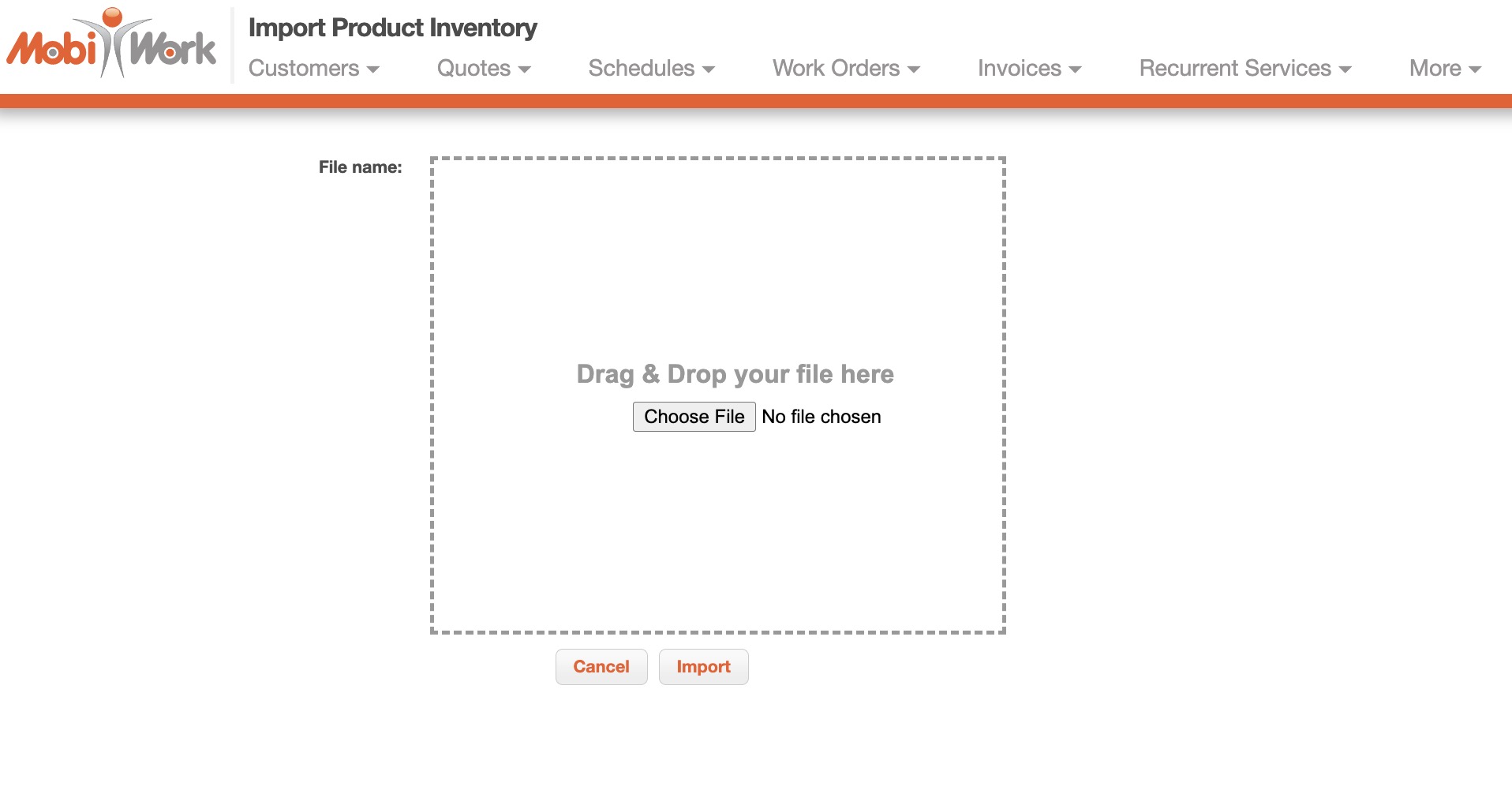 Once you have entered the inventory in the Excel document correctly, you can upload that document to MobiWork.