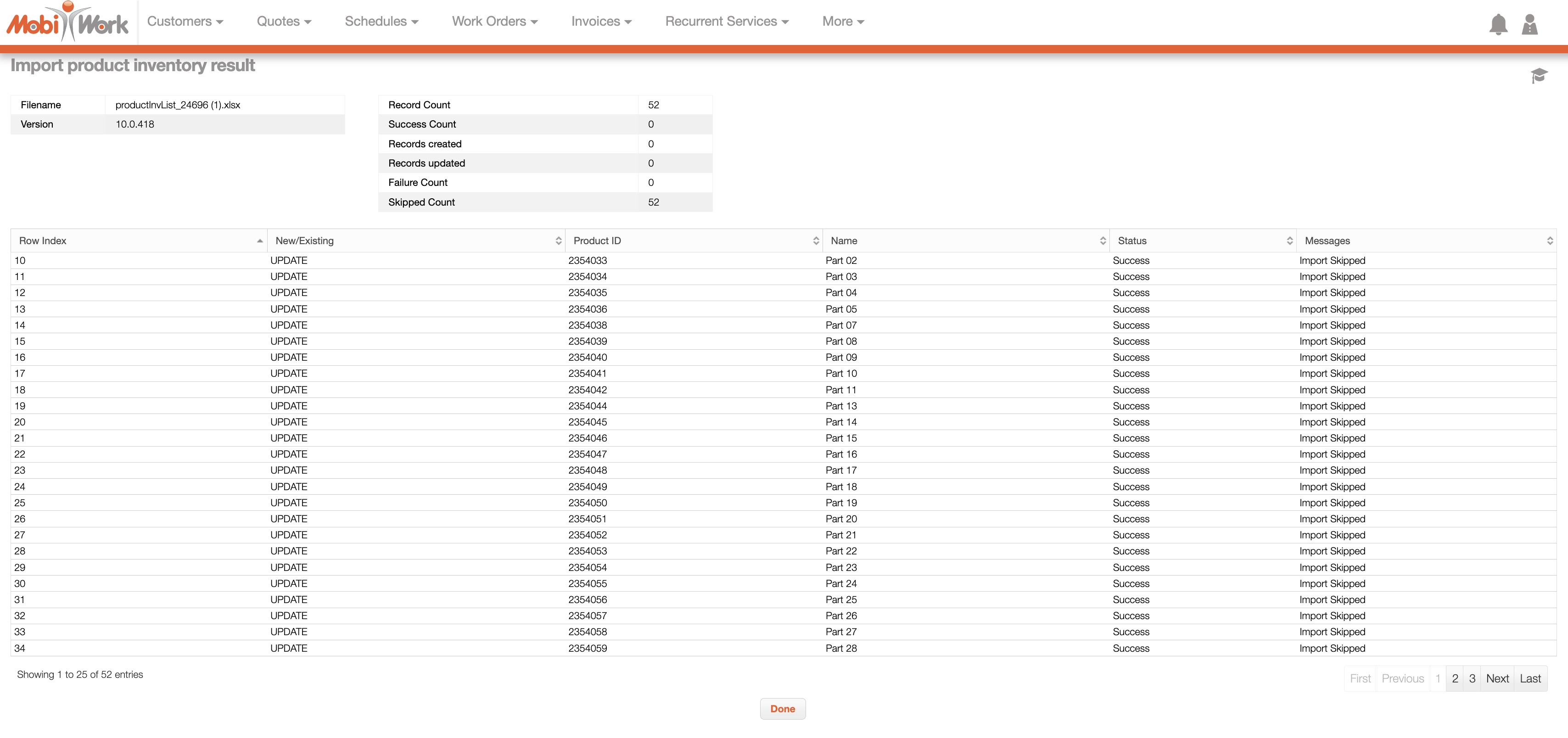 Once you are redirected to the Import Product Results page, click the Done button: