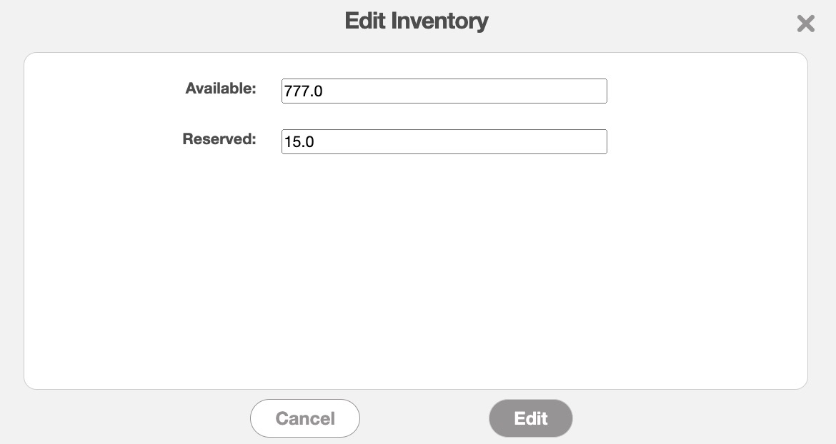 Regardless of the method you use to edit the inventory stock levels, the Edit Inventory pop-up window will appear:
