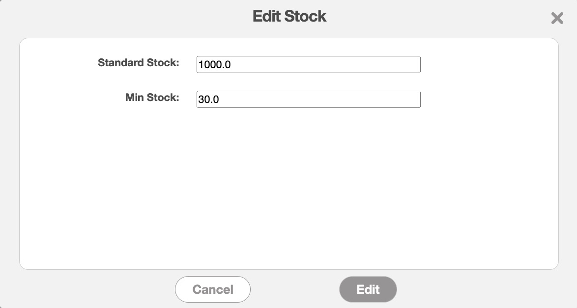 Regardless of the method you use to edit the warehouse inventory stock levels, the Edit Stock pop-up window will appear: