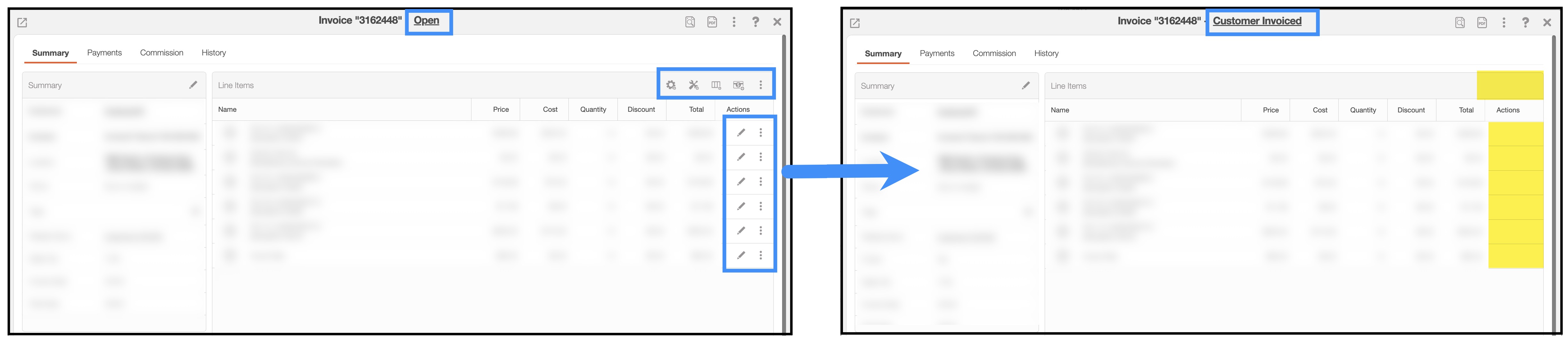 Once you set an invoice's status to "Customer Invoiced" or use the "Lock Invoice" option from the right-click / Individual Actions drop-down menus, you will be unable to edit the line items: