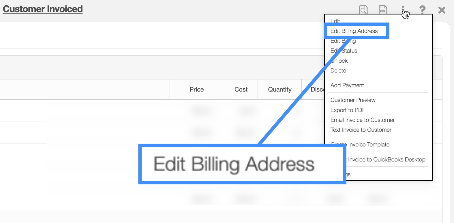 If you would like to only edit the billing address of an invoice, you will be able to do so through the View Invoice pop-up window. To see how to access this pop-up window, please see the View an Invoice page.