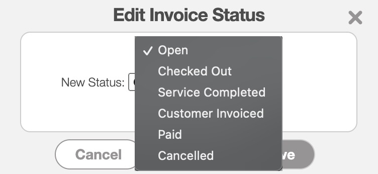 Regardless of the method you choose to edit the status of an invoice, the Edit Invoice Status pop-up window will appear: