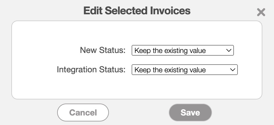 - The "Integration Status" will update the status of the invoices integrating with a third-party software solution. (e.g., QuickBooks). For more information about the Integration Status please see the View an Invoice page.