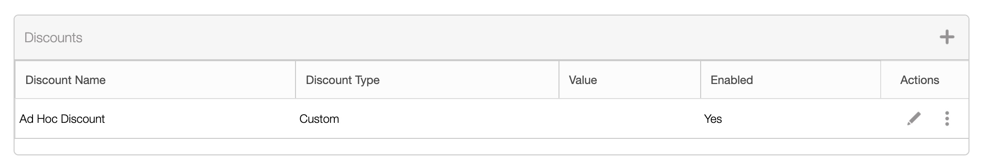 | "Actions" | Will allow you to edit or delete the selected discount. |