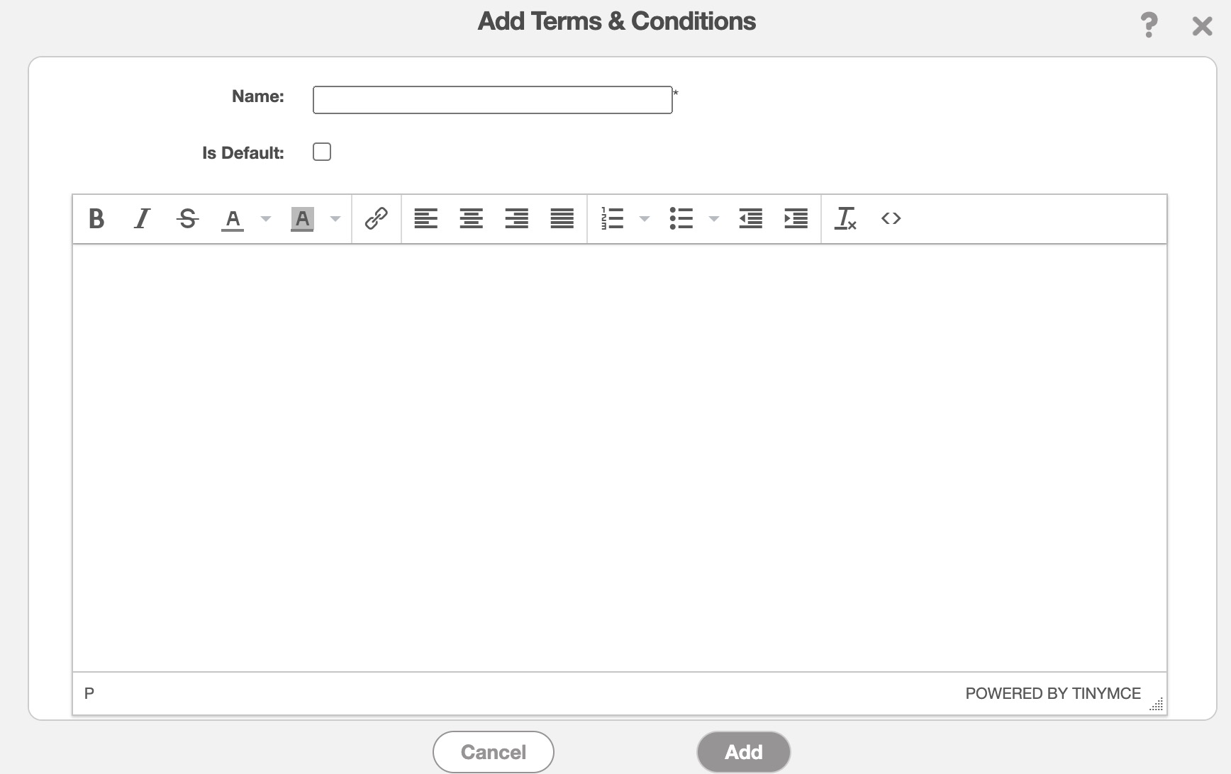 Once you have finished inputting the desired information, click the Add button to save the terms and conditions.