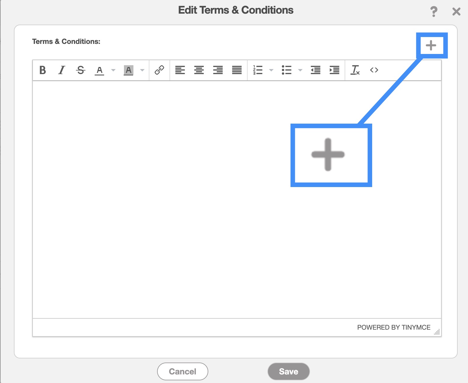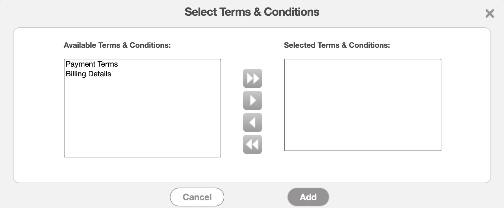 Once you click on the Add Terms & Conditions button, the Add Terms & Conditions pop-up window will appear: