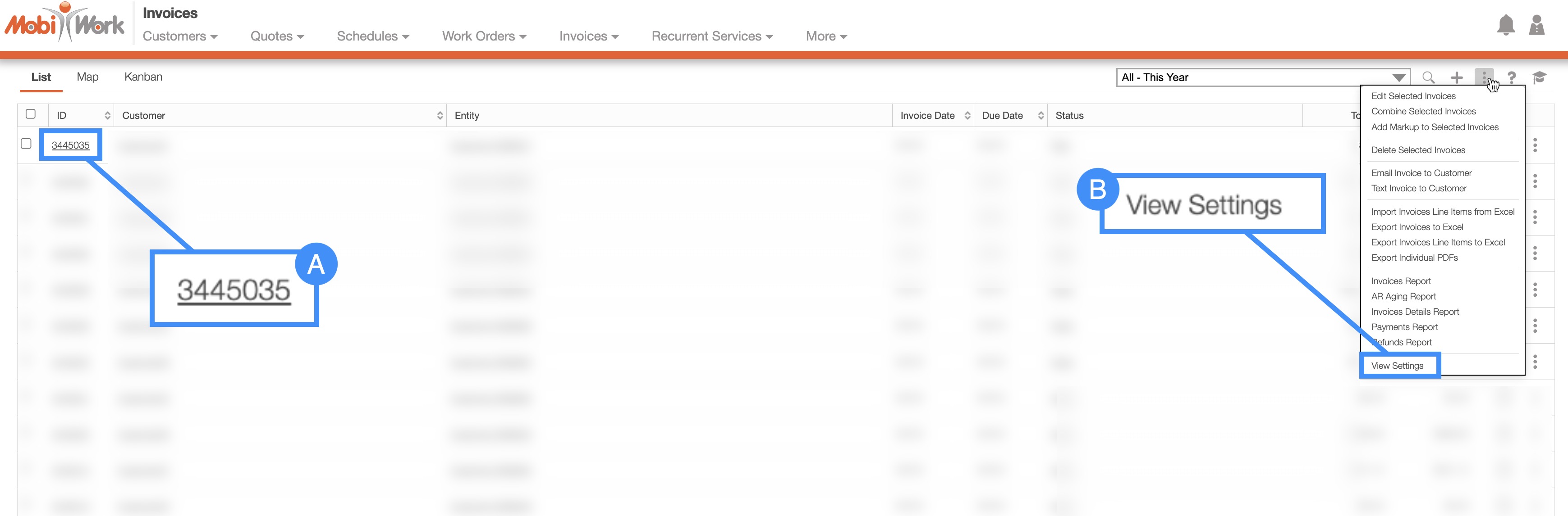 - By clicking on the ID number of an invoice and accessing the View Invoice pop-up window: