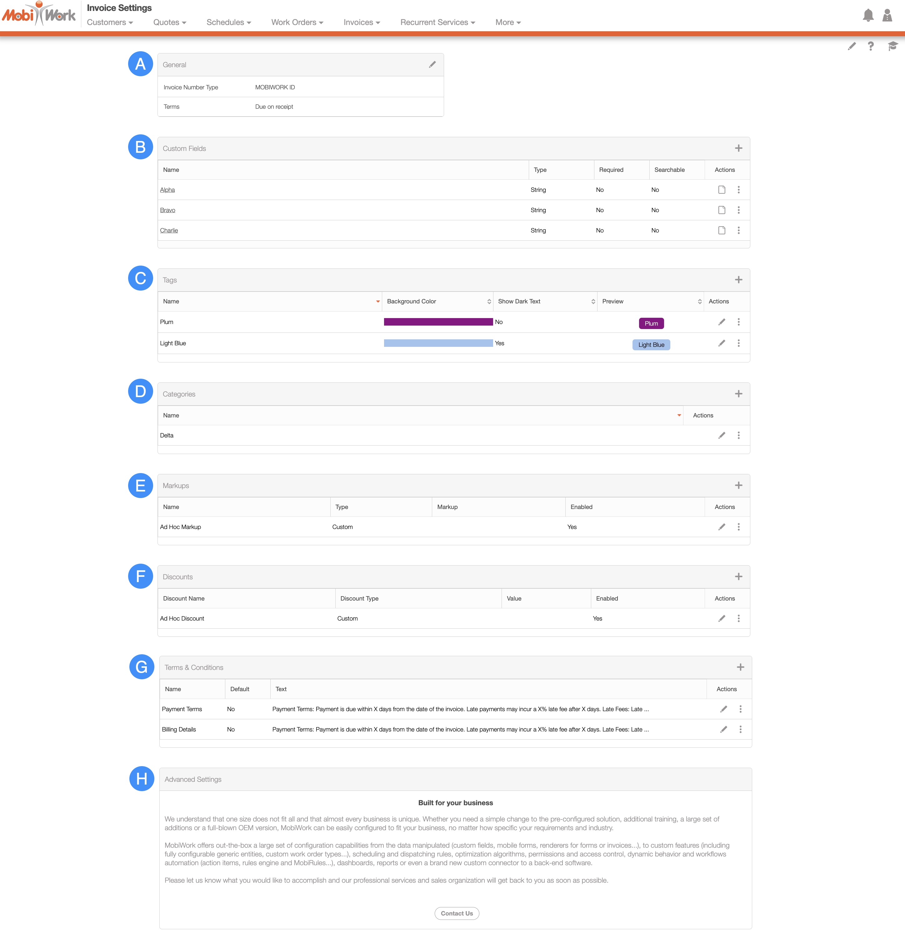 - Invoice Number Type- which is a number or sequence used to organize the invoices in MobiWork.