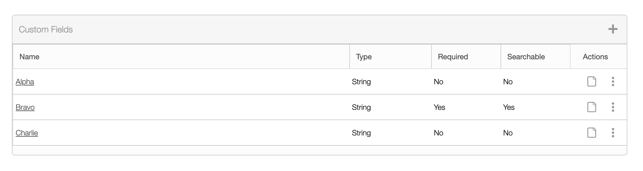 | "Actions" | Allows you to view, edit, and delete the selected custom field. |