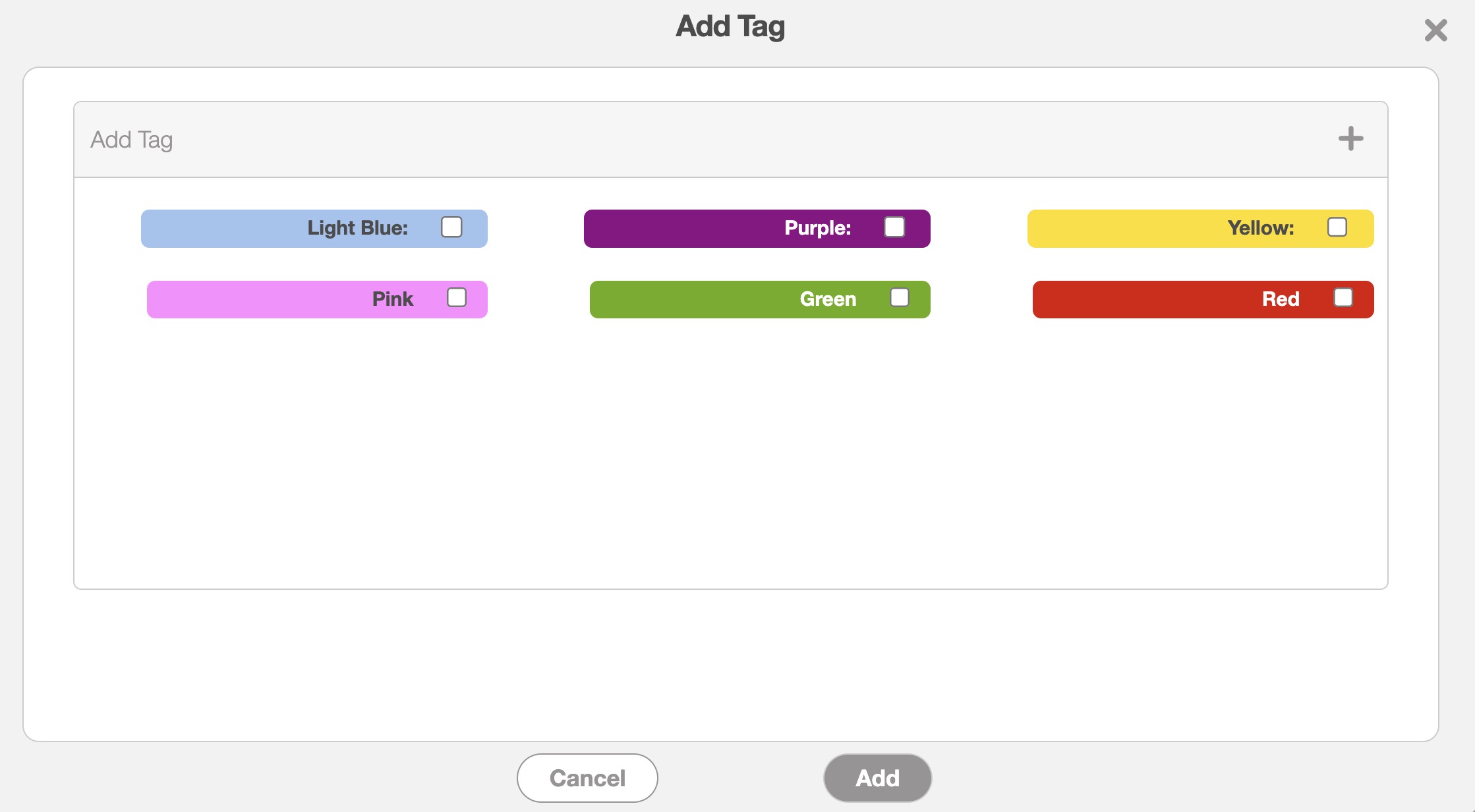 Once you click on the Plus Sign icon, the Add Tag pop-up window will then appear: