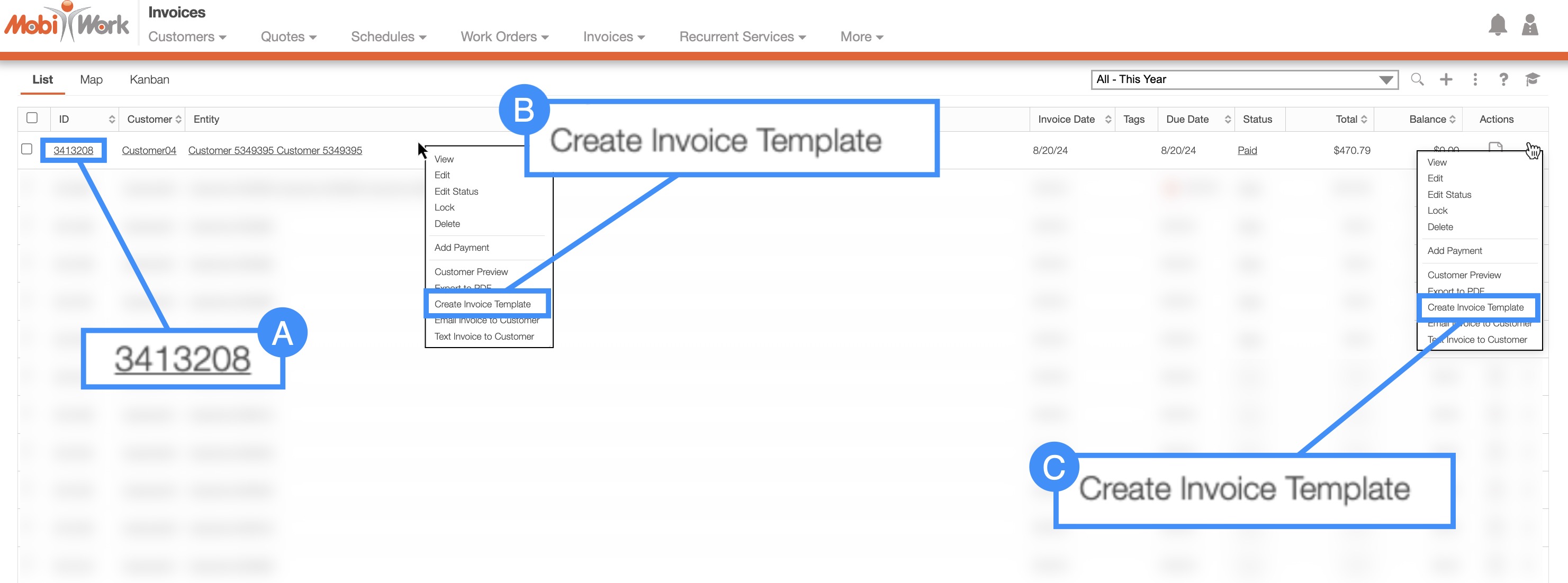 There are three different ways you can generate an invoice template from an already-existing invoice: