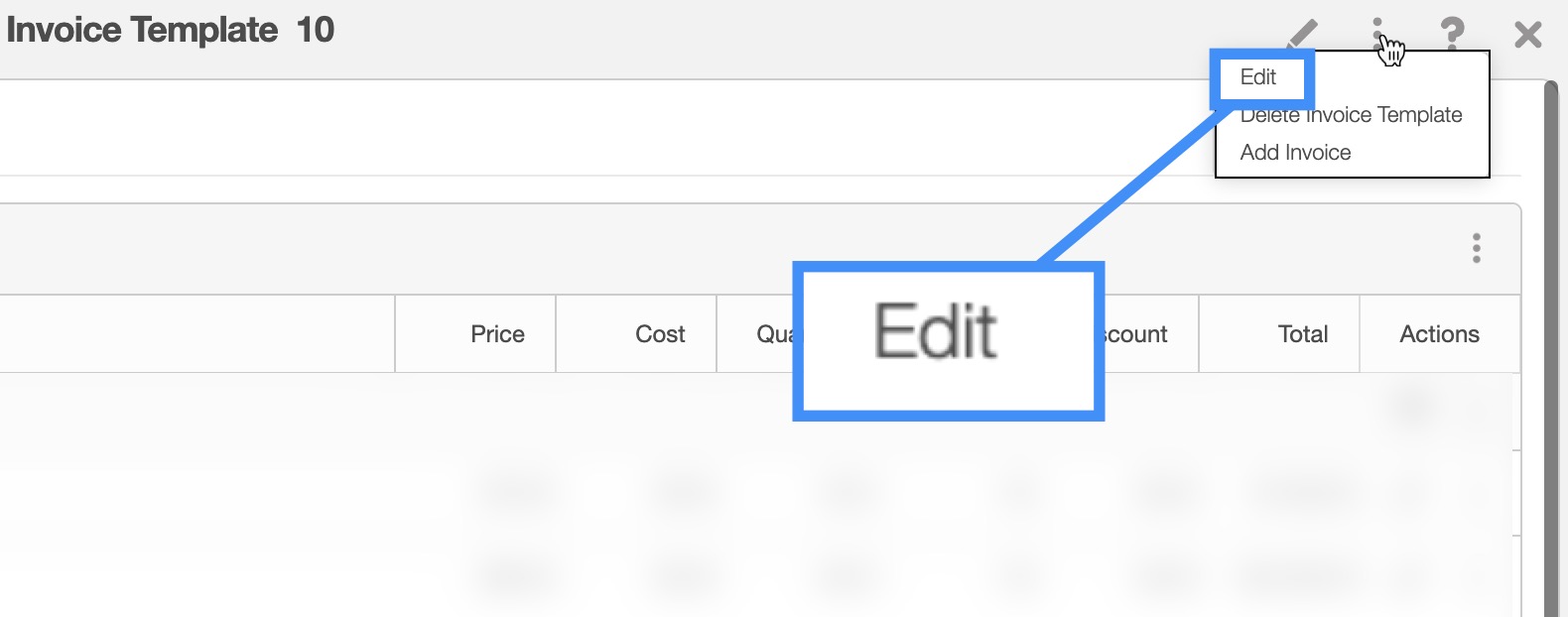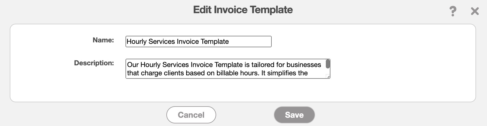 Regardless of the method you choose to edit your invoice template, the Edit Invoice Template pop-up window will appear: