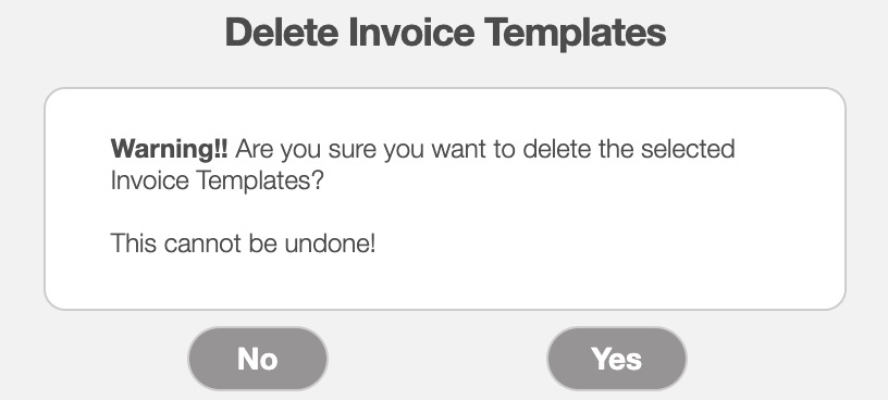- If you are sure you would like to remove the selected invoice templates, click the Yes button.