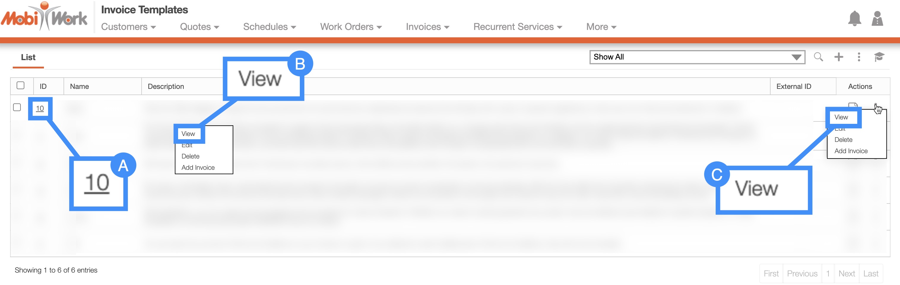 There are three different ways you can access the View Invoice Template pop-up window; you will first need to be on the Invoice Templates page to view your invoice templates: