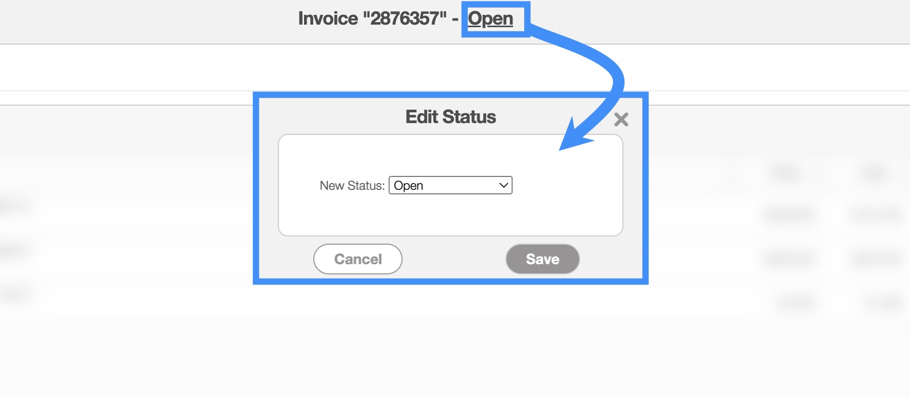 | "Edit Status" | Allows the user to edit the status of the invoice. |