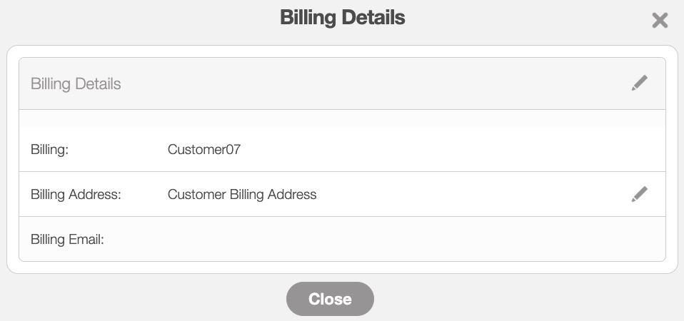When you click on the Pencil icon in the "Bill To" panel, the Billing Details pop-up window will appear: