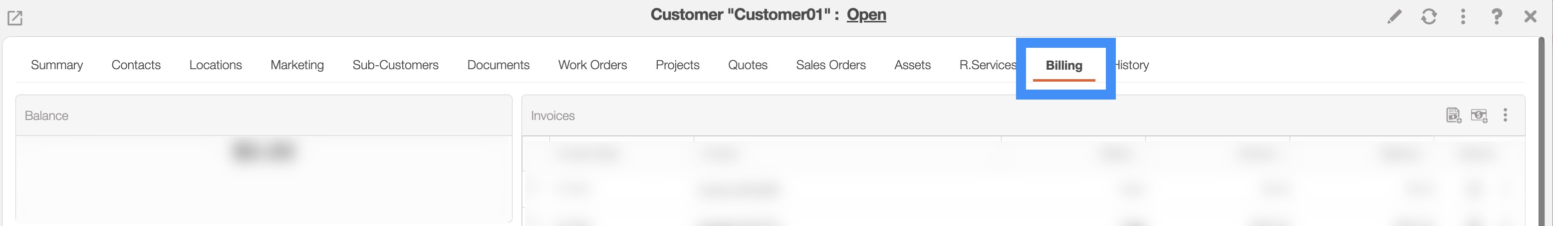 | "Billing" | Allows you to view or edit bill to details of the invoice (i.e., the customer will be invoiced, the parent customer will be invoiced, the invoice will be sent to another customer, or input another billing name and email). |